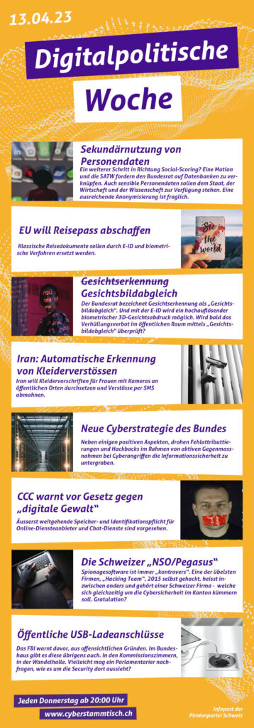 Stellungnahme Vertreter der Piratenpartei nahmen heute im Bundeshaus an einer Anhörung der Rechtskommission des Nationalrates zur neuen E-ID teil. Die Piratenpartei hat massgeblich das Referendum gegen das erste E-ID-Gesetz unterstützt, welches in Folge 2021 klar abgelehnt wurde. Die Piratenpartei hat in ihrer Technologiefolgenabschätzung schon grundsätzliche Bedenken zu einer E-ID an sich, da zu befürchten ist, dass wir uns immer mehr für alltägliche Handlungen ausweisen müssen. Wir haben bei...